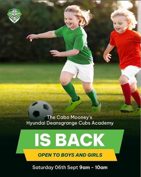 The Cabo @mooneysdeansgrange Cubs & Kittens academy is back so soon on the 6th of September β the perfect introduction to football for boys and girls!
