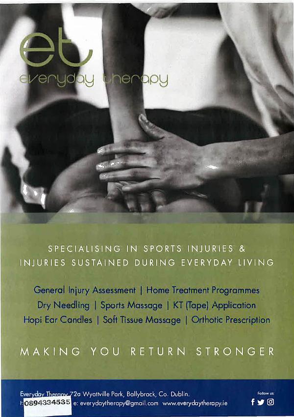 Cabinteely FC is delighted to announce a new partnership with Everyday Therapy, led by Athletic Therapist and Certified Trainer, Emma Finnie.